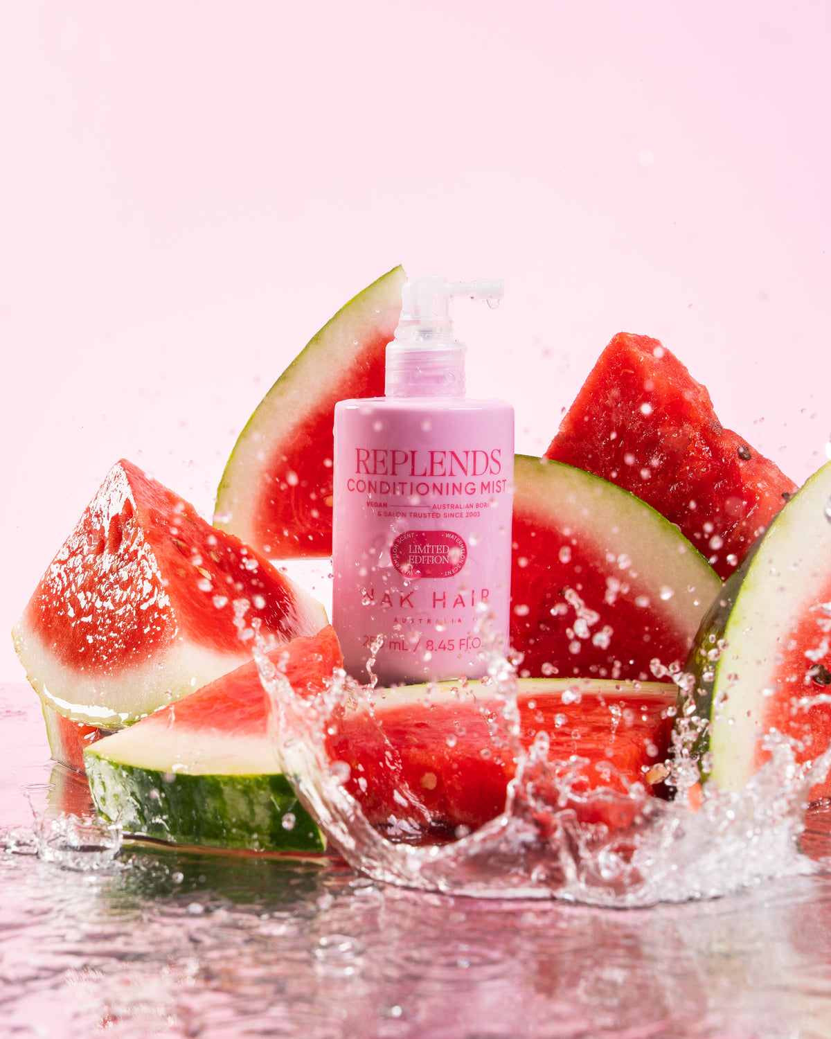 NAK Signature Replends Leave-in Conditioning Watermelon Mist 250ml A daily leave-in conditioning mist, with Baobab Seed and Agave Leaf Extract to smooth and soften hair.