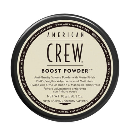 American Crew Boost Powder 10g gives hair lift, thickness and a matte finish. This weightless powder adds grit for dramatic, gravity-defying texture. And, it can be layered with virtually any other American Crew styling product. 10g