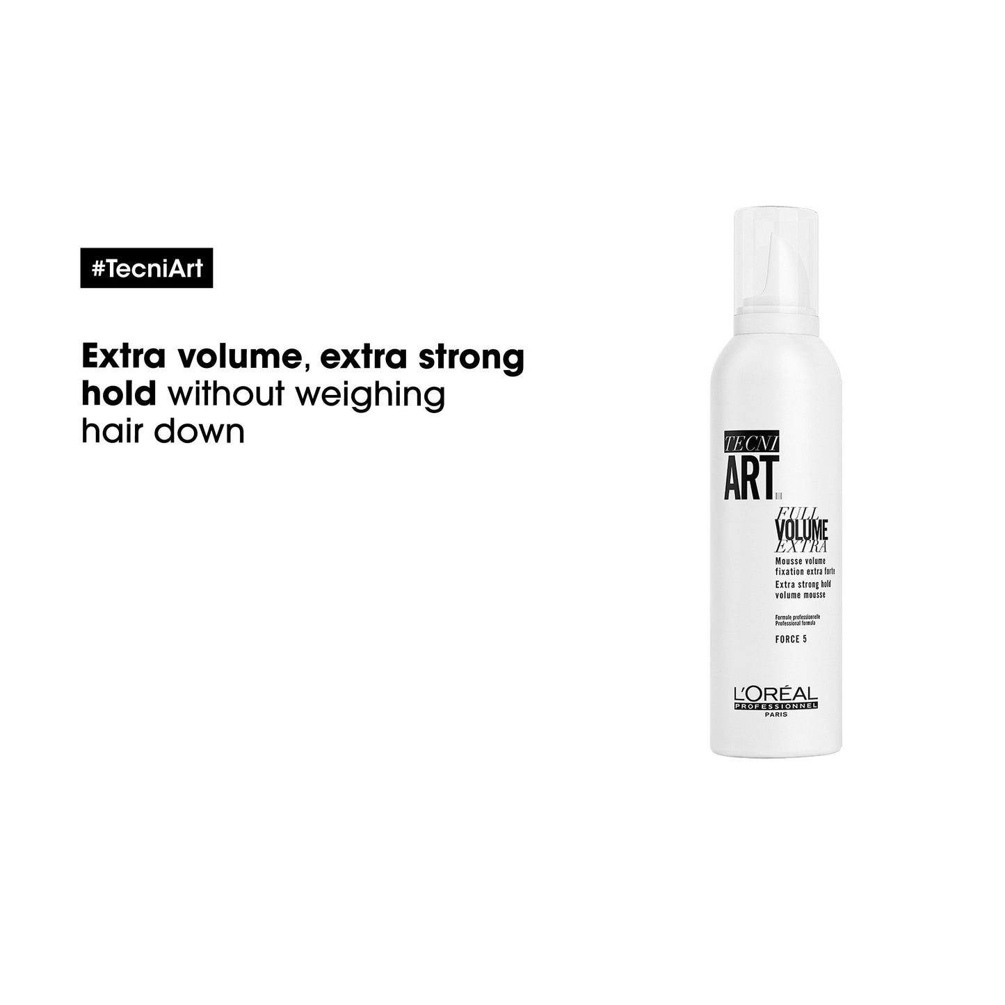 Tecni.ART Full Volume Extra Mousse by L’Oréal Professionnel is perfect for creating XL blowdries and volumised hair. 250ml