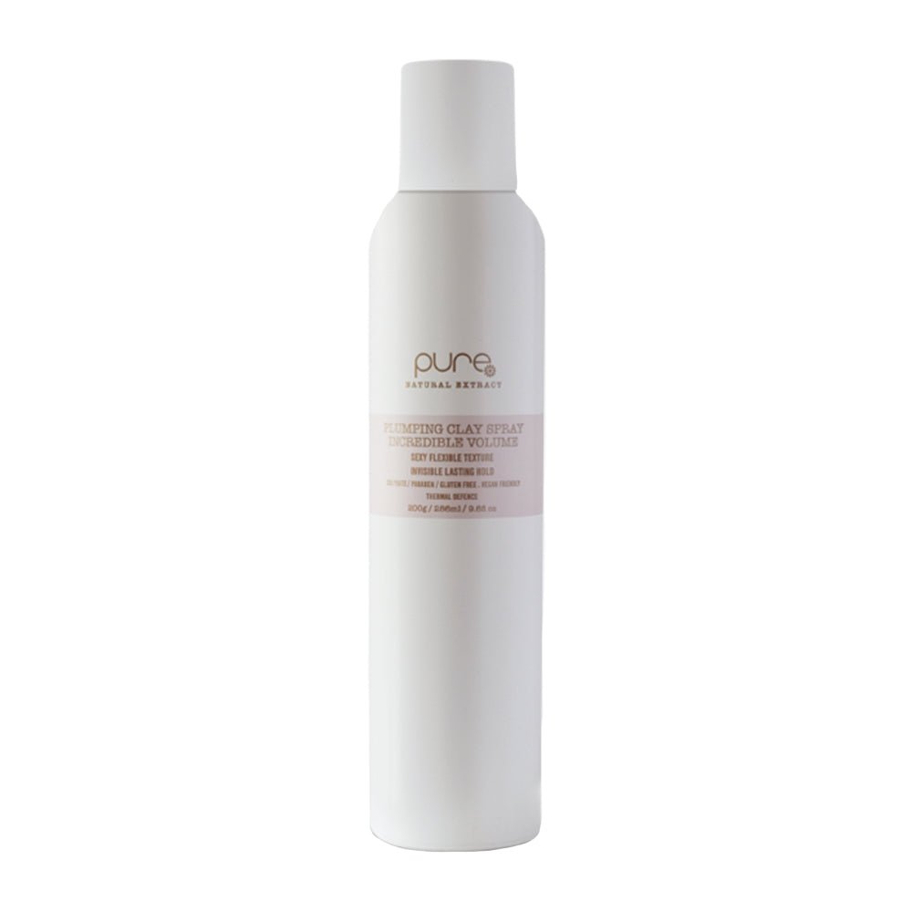 Pure Plumping Clay Spray 200g creates workable texture and shape holding styling in place with a flexible natural feel in all hair types.