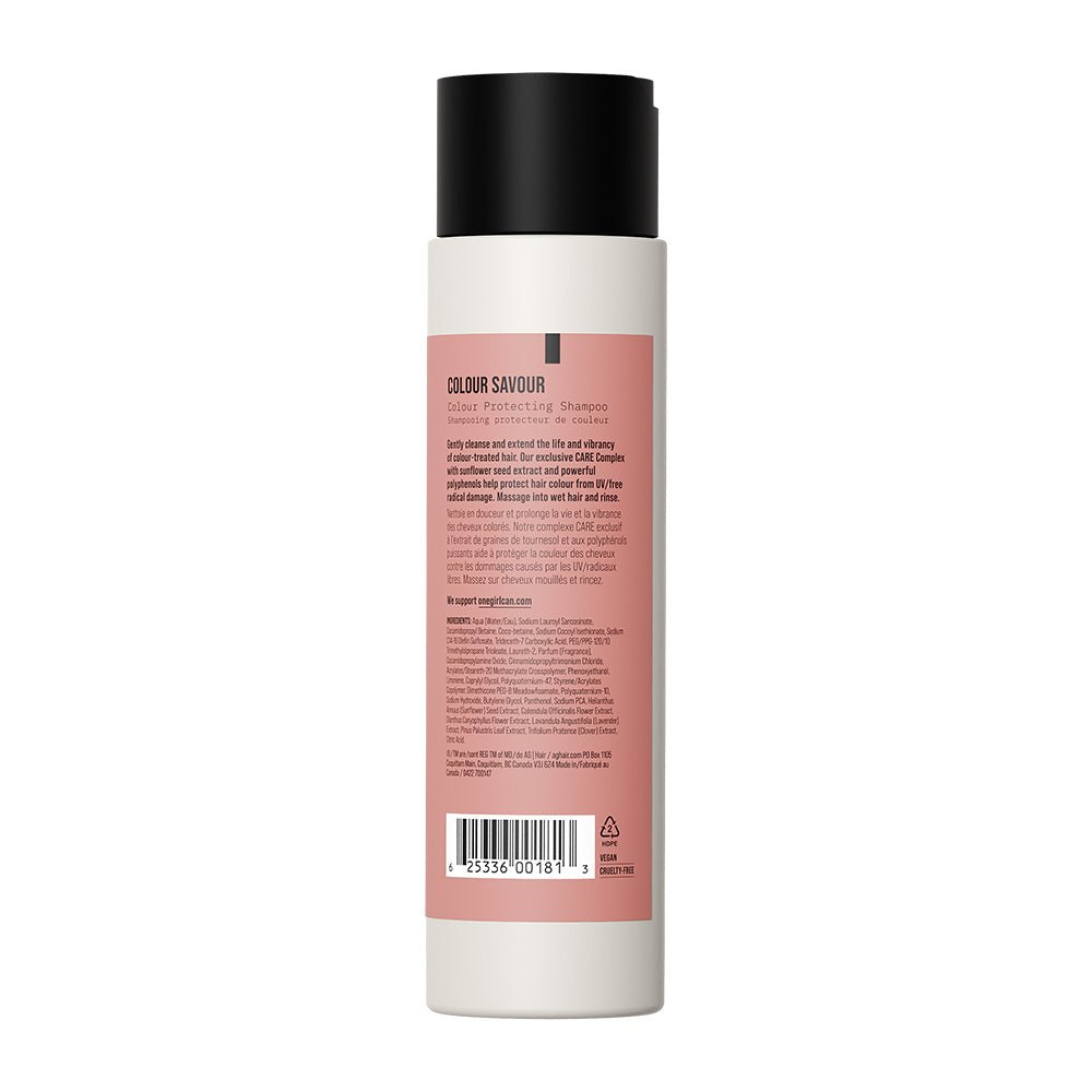 AG Care Colour Savour Colour Protecting Shampoo 296ml gently cleanses and extends the life and vibrancy of colour-treated hair. AG Care's exclusive CARE Complex with sunflower seed extract and powerful polyphenols helps protect hair colour from UV/free radical damage.