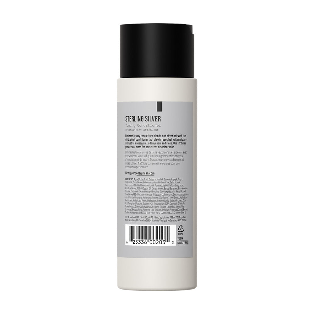 AG Care Sterling Silver Toning Conditioner 237ml eliminates brassy tones from blonde and silver hair. This vivid, violet conditioner infuses hair with moisture and luster.