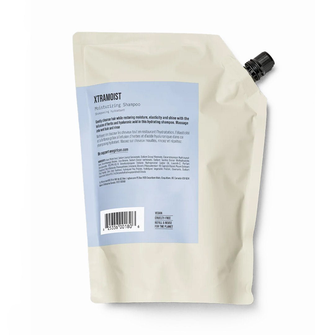 AG Care Xtramoist Moisturizing Shampoo 1L Refill Pouch gently cleanses hair while restoring moisture, elasticity and shine with the infusion of herbs and hyaluronic acid.