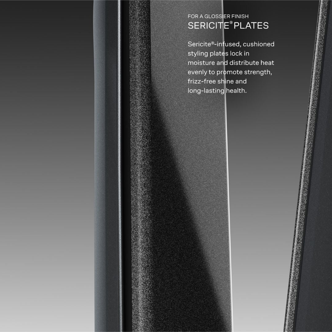 - Sericite®-infused, cushioned styling plates lock in moisture and distribute heat evenly to promote strength, frizz-free shine and long-lasting health