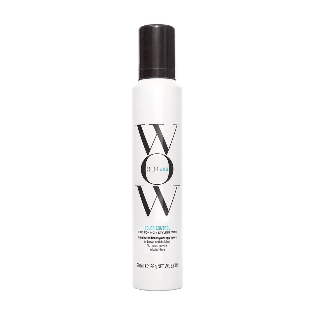 Color WOW Color Control Blue Mousse 200ml specifically formulated for brunette hair. The unique blue-tinted foam immediately neutralizes unwanted brassiness and orange tones. Unlike blue shampoos that can cause staining, the Toning & Styling Foam is a cleaner alternative.