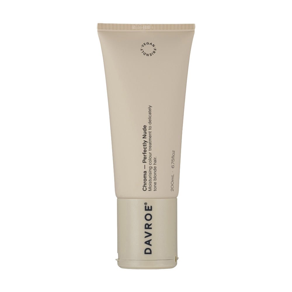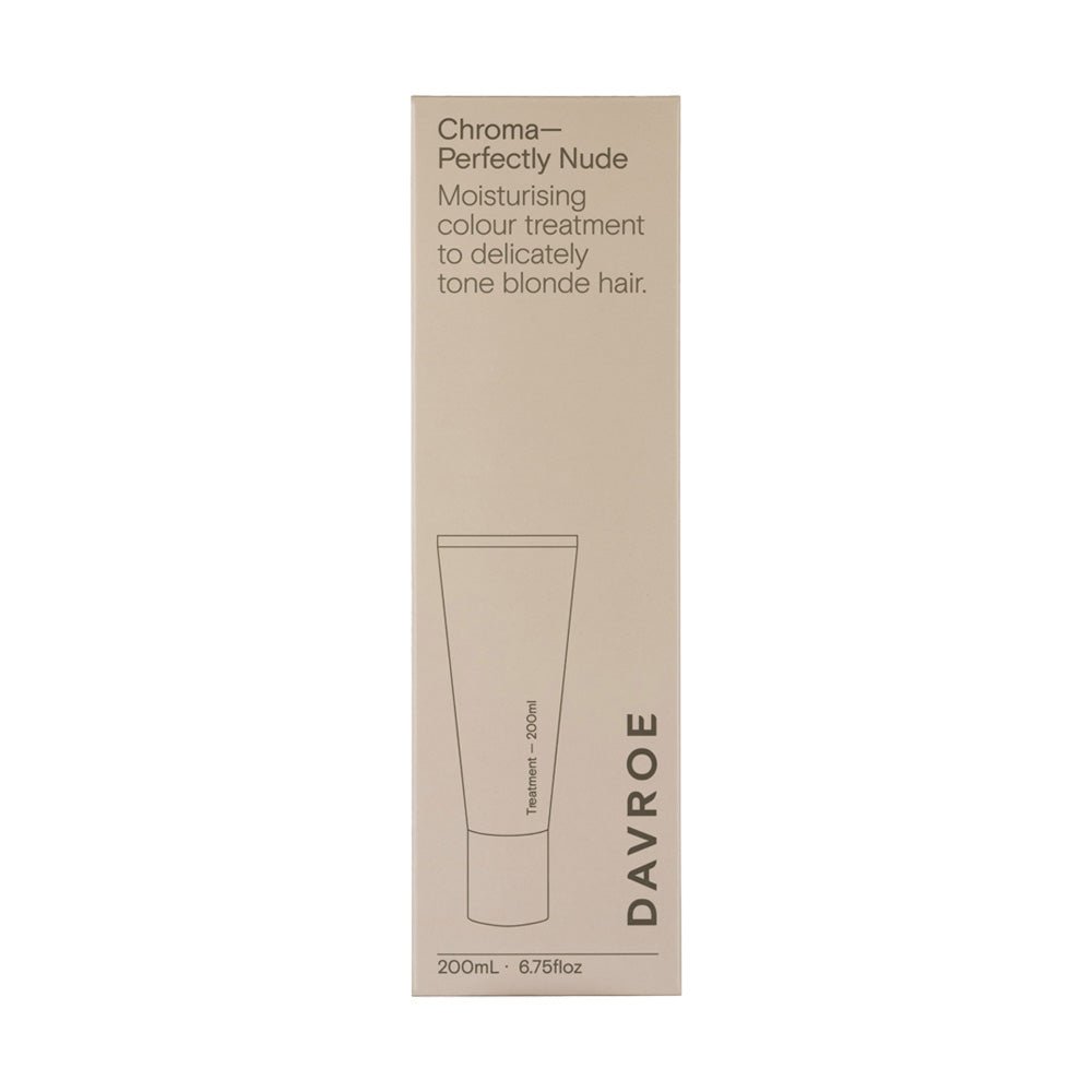 Davroe Chroma Perfectly Nude 200ml is a moisturising colour treatment to delicately tone blonde hair. Containing Macadamia nut extract, this Perfectly Nude Chroma leaves blonde hair with a creamy hue, removing warm gold tones. Improves hair strength, while adding moisture, leaving hair nourished and revitalised. Improves hair strength, while adding moisture. Contains natural plant and flower extracts.