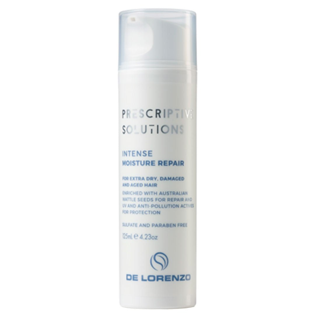 De Lorenzo Prescriptive Solutions Intense Moisture Repair 125ml is a intense repair lotion, designed to hydrate coarse, damaged and aged hair. Moisture Repair is a leave-in product that nourishes hair and provides superior protection from pollutants including UV sun rays, dust and gases. Contains Australian Wattle Seeds and Cacay Oil.