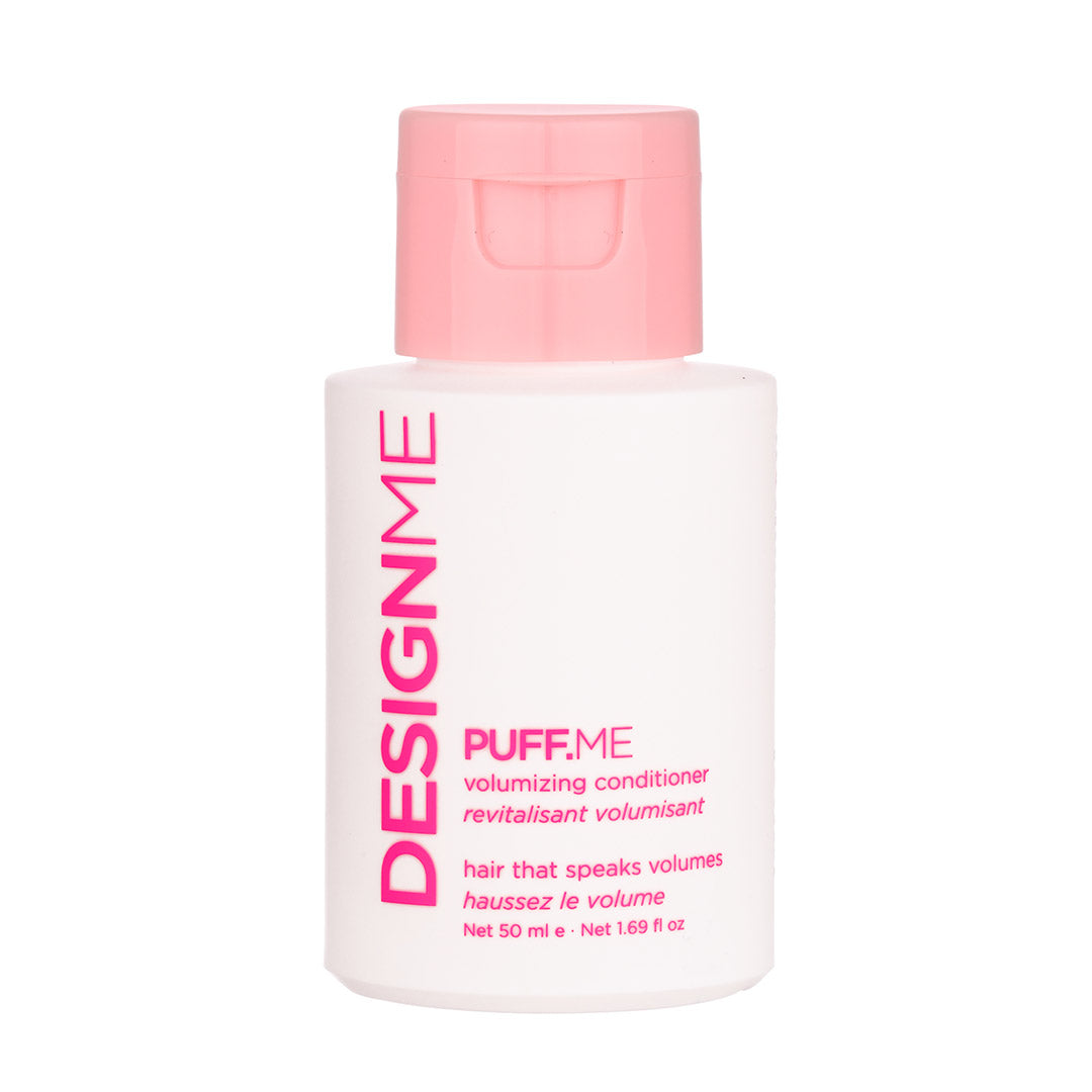 DesignMe Puff.Me Volumizing Conditioner 50ml weightlessly nourishes hair while infusing it with maximum volume. Perfect for those with fine, flat or limp hair, this conditioner is designed to give hair body & bounce, while detangling, smoothing & restoring shine. Hair feels softer than ever, without feeling greasy or weighed down.