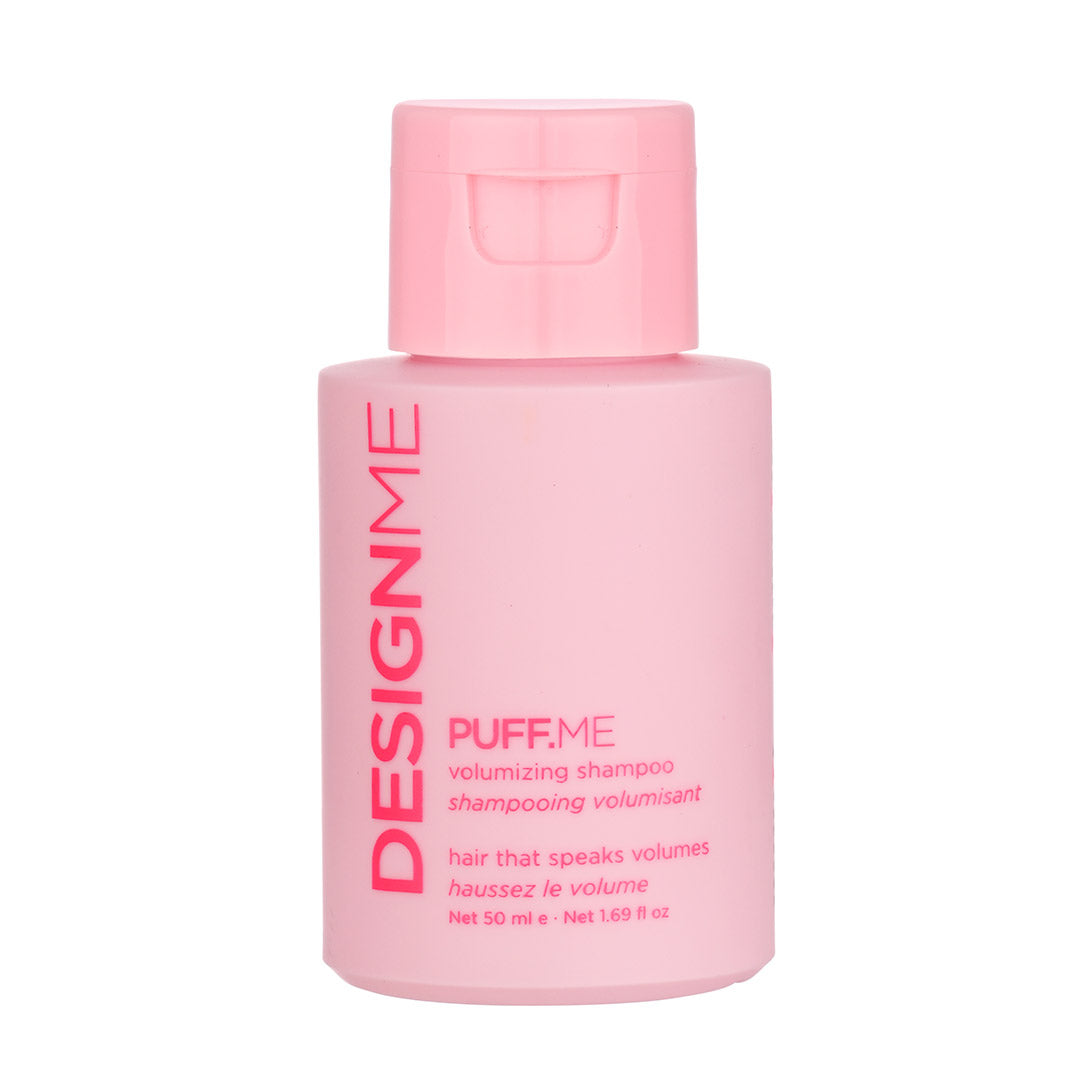 DesignMe Puff.Me Volumizing Shampoo 50ml designed to thoroughly cleanse the scalp without stripping, PUFF.ME volumizing shampoo creates weightless volume & body, all while leaving hair feeling healthy and soft. Revive flat, limp hair with our gentle, volume-boosting shampoo.
