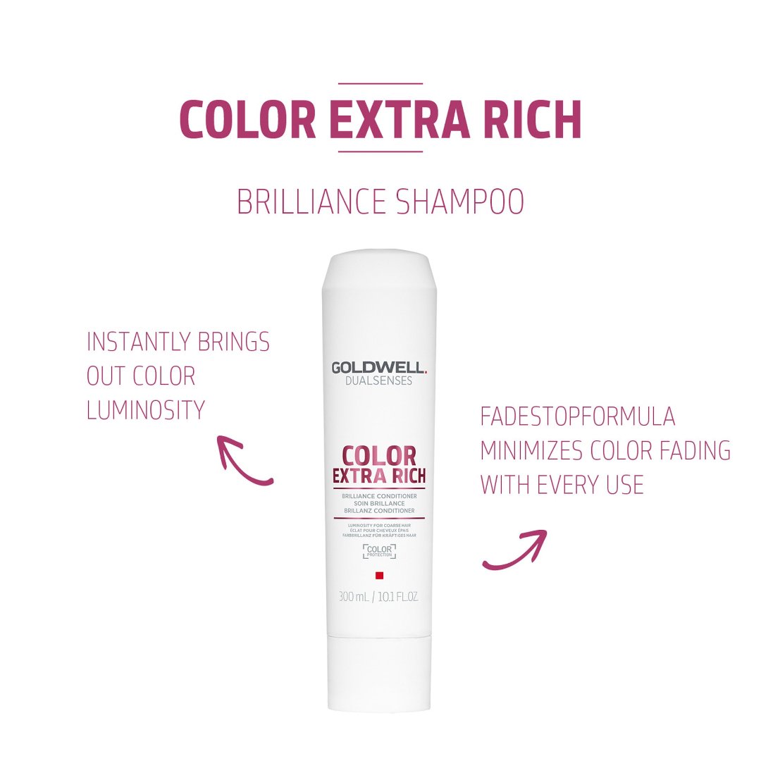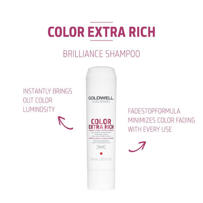 Goldwell Dualsenses Color Extra Rich Brilliance Shampoo 300ml creates luminous colour for both coloured and natural hair that is thick or coarse, minimising colour fading with each use.