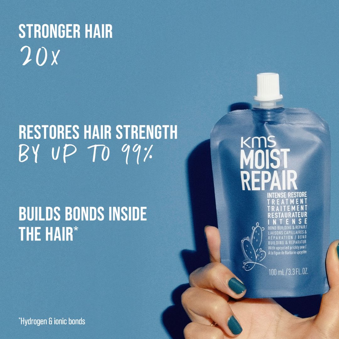 KMS Moist Repair Intensive Restore Treatment 100ml reconstructs damaged hair structures, strengthens & protects from damage. Reduces breakage & split ends by up to 99%. Restores hair's natural protective power and instantly replenishes moisture without weight.