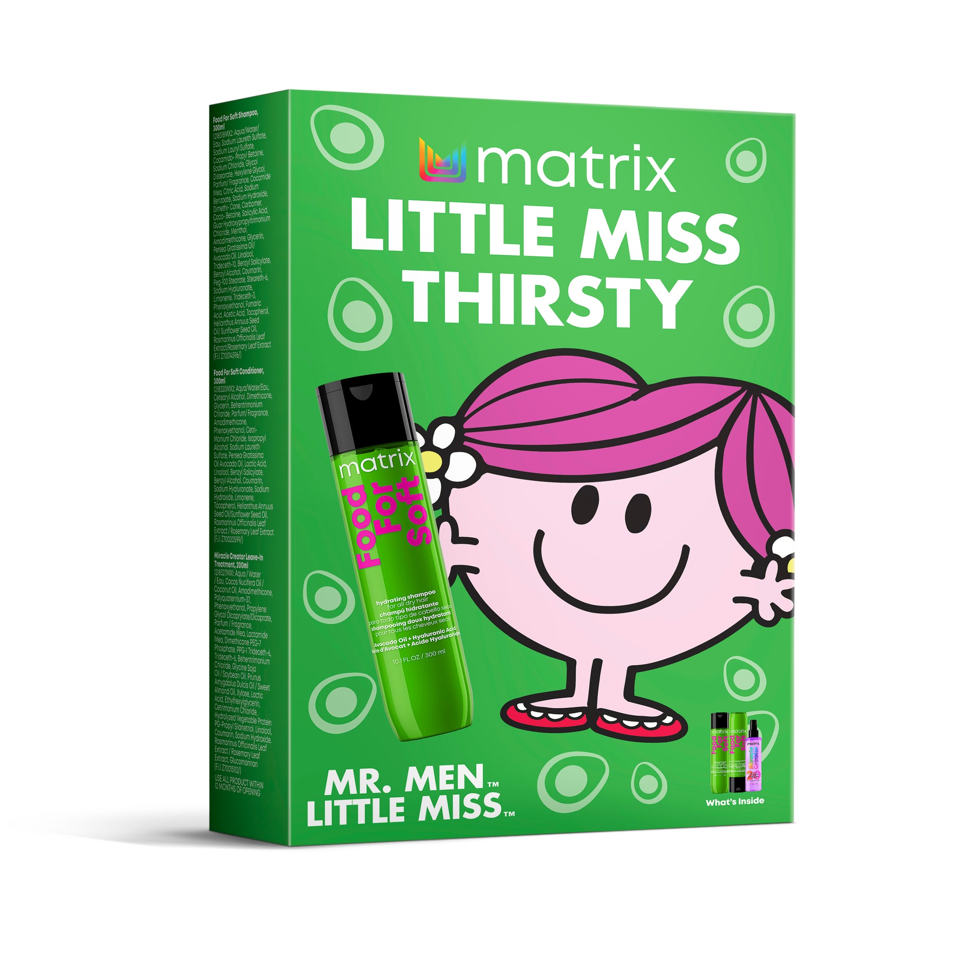 Matrix Total Results Food For Soft Shampoo: Aqua / Water / Eau, Sodium Laureth Sulfate, Sodium Lauryl Sulfate, Cocamidopropyl Betaine, Sodium Chloride, Glycol Distearate, Hexylene Glycol, Parfum / Fragrance, Cocamide Mea, Citric Acid, Sodium Benzoate, Sodium Hydroxide, Dimethicone, Carbomer, Coco-Betaine, Salicylic Acid, Guar Hydroxypropyltrimonium Chloride, Menthol, Amodimethicone, Glycerin, Persea Gratissima Oil / Avocado Oil, Linalool, Trideceth-10, Benzyl Salicylate, Benzyl Alcohol, Coumarin, Peg-100 Stearate, Steareth-6, Sodium Hyaluronate, Limonene, Trideceth-3, Phenoxyethanol, Fumaric Acid, Acetic Acid, Tocopherol, Helianthus Annuus Seed Oil / Sunflower Seed Oil, Rosmarinus Officinalis Leaf Extract / Rosemary Leaf Extract.