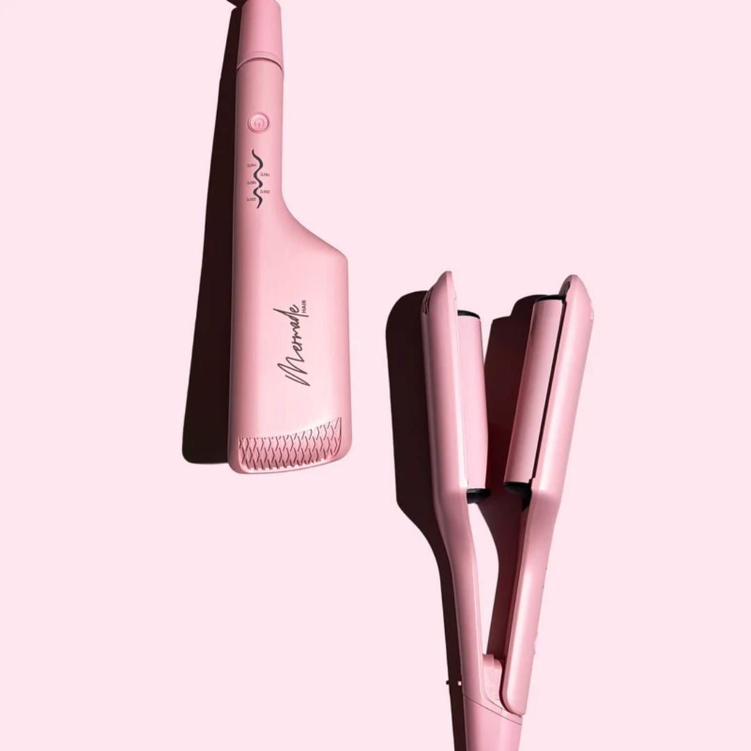Mermade Double Waver Max Pink is the ultimate styling tool for creating effortless, voluminous waves with ease. Designed with a jumbo 32mm double-barrel and anti-scald plates, it delivers bouncy, statement-making waves in seconds. Thanks to advanced intelligent heat technology, it heats up in just two seconds, while ionic ceramic-coated plates protect your hair for a smooth, healthy finish.