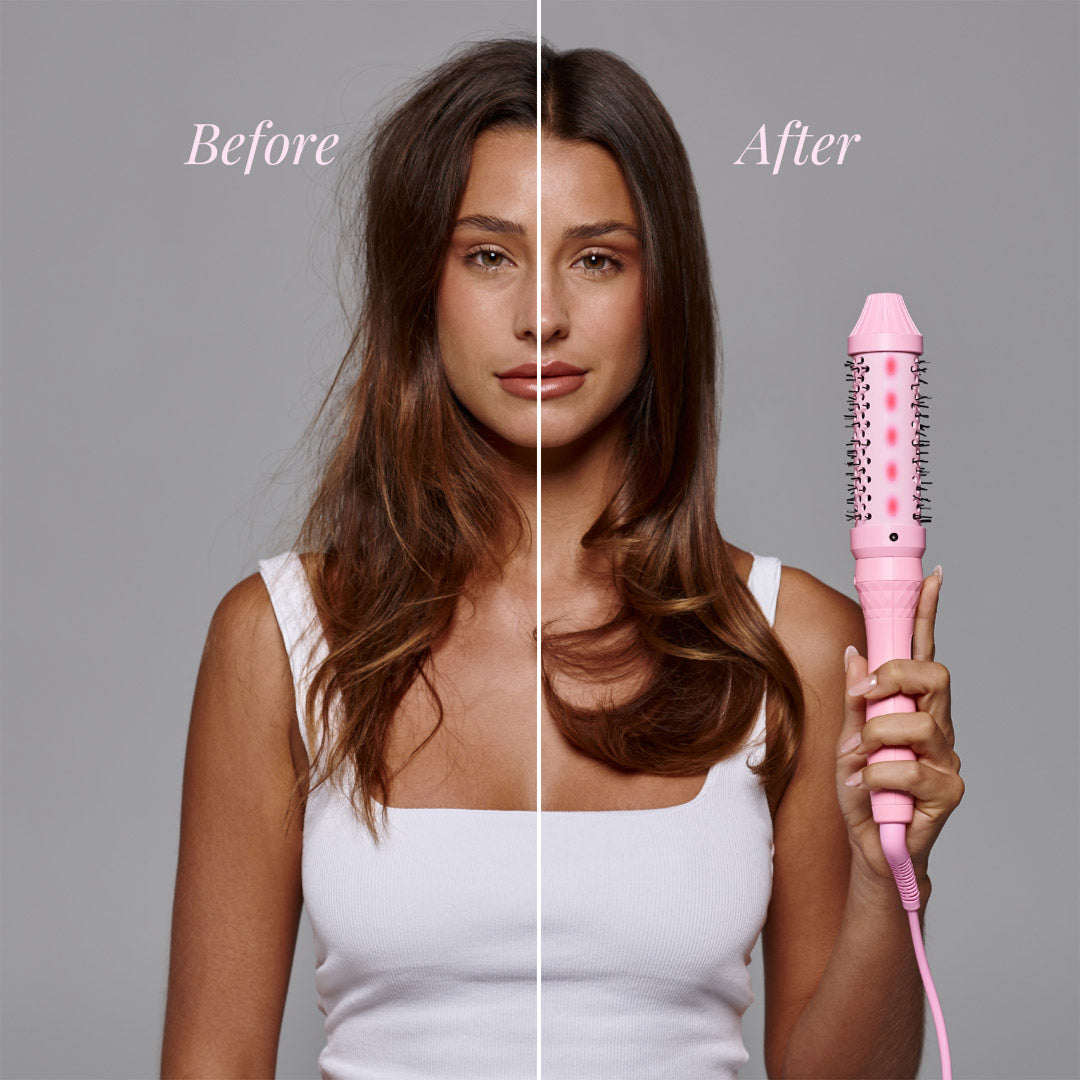 Start with dry hair. Use the brush like you would use a traditional round brush. Focus on the roots for added lift. You can create a simple curl at the end of your hair or release the brush in a spiral shape to create a soft wave.