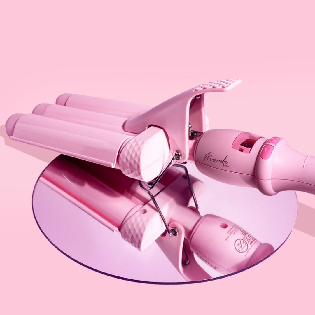 Mermade Hair Pro Waver Mini 25mm Pink is the tool you need for cute hair all day, every day. The 25mm Pro Waver creates mini compact waves for a ripple effect that is taking hair trends to a whole new level. It's basically the little sister of our original waver which has 32mm barrels. Ceramic tourmaline-infused barrels release negatively charged ion particles to seal hair cuticles, infuse moisture, eliminate frizz and create shine.