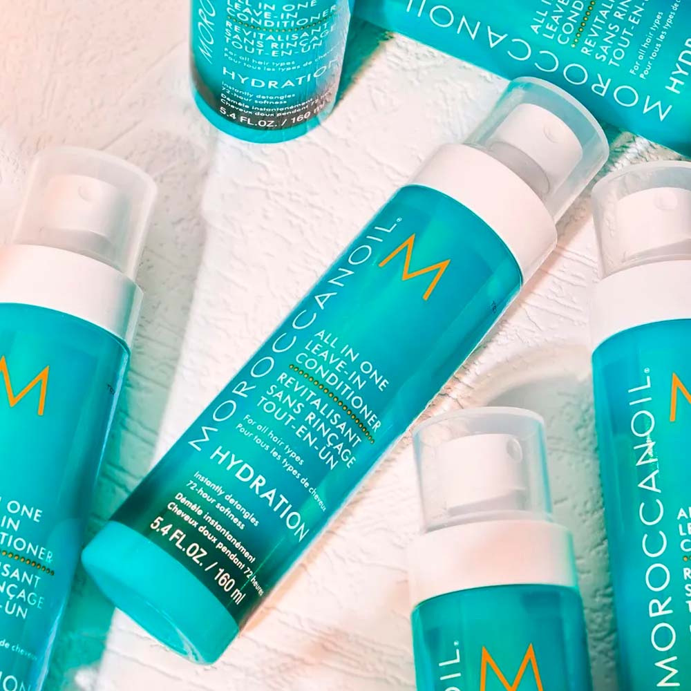 Moroccanoil All in One Leave-in Conditioner 160ml instantly detangle, hydrate, and protect hair with All in One Leave-in Conditioner. This multitasking spray works on all hair types to protect against breakage and thermal damage while nourishing and softening the hair for up to 72 hours.