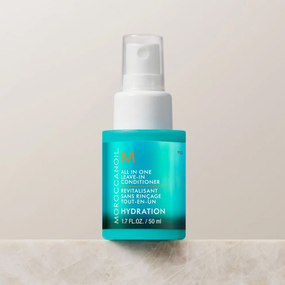 Moroccanoil All in One Leave-In Conditioner 50ml instantly detangle, hydrate, and protect hair with All in One Leave-in Conditioner. This multitasking spray works on all hair types to protect against breakage and thermal damage while nourishing and softening the hair for up to 72 hours.