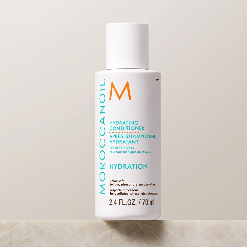 Moroccanoil Hydrating Conditioner 70ml conditions and detangles dehydrated hair with a gentle, daily-use formula. Leaves hair smoother, more manageable and easier to style. Infused with antioxidant-rich Argan oil, vitamins A and E and moisturising red algae for optimal hydration for all hair types from normal to dry hair.