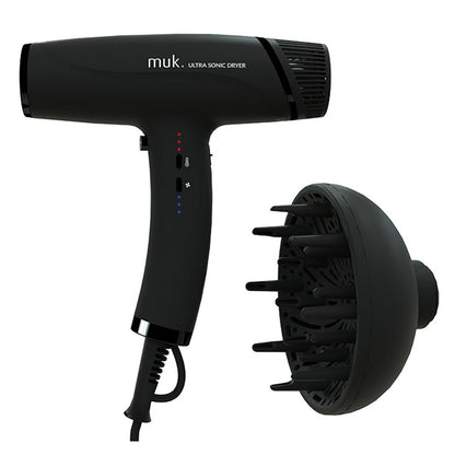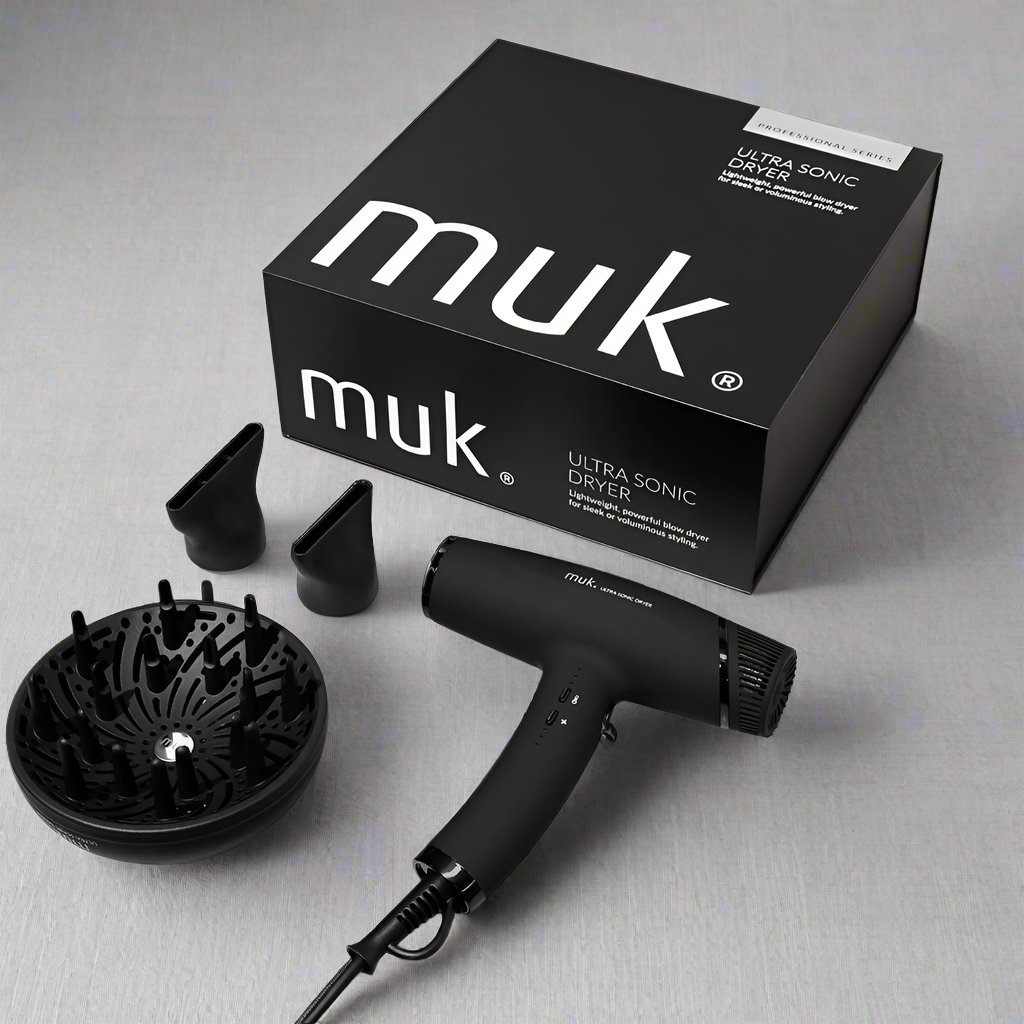 muk Ultra Sonic Dryer Black professional series is lightweight, ergonomic, quick, quiet and powerful, the new muk Ultra Sonic Dryer will elevate your hair drying and blow waving to supersonic heights.