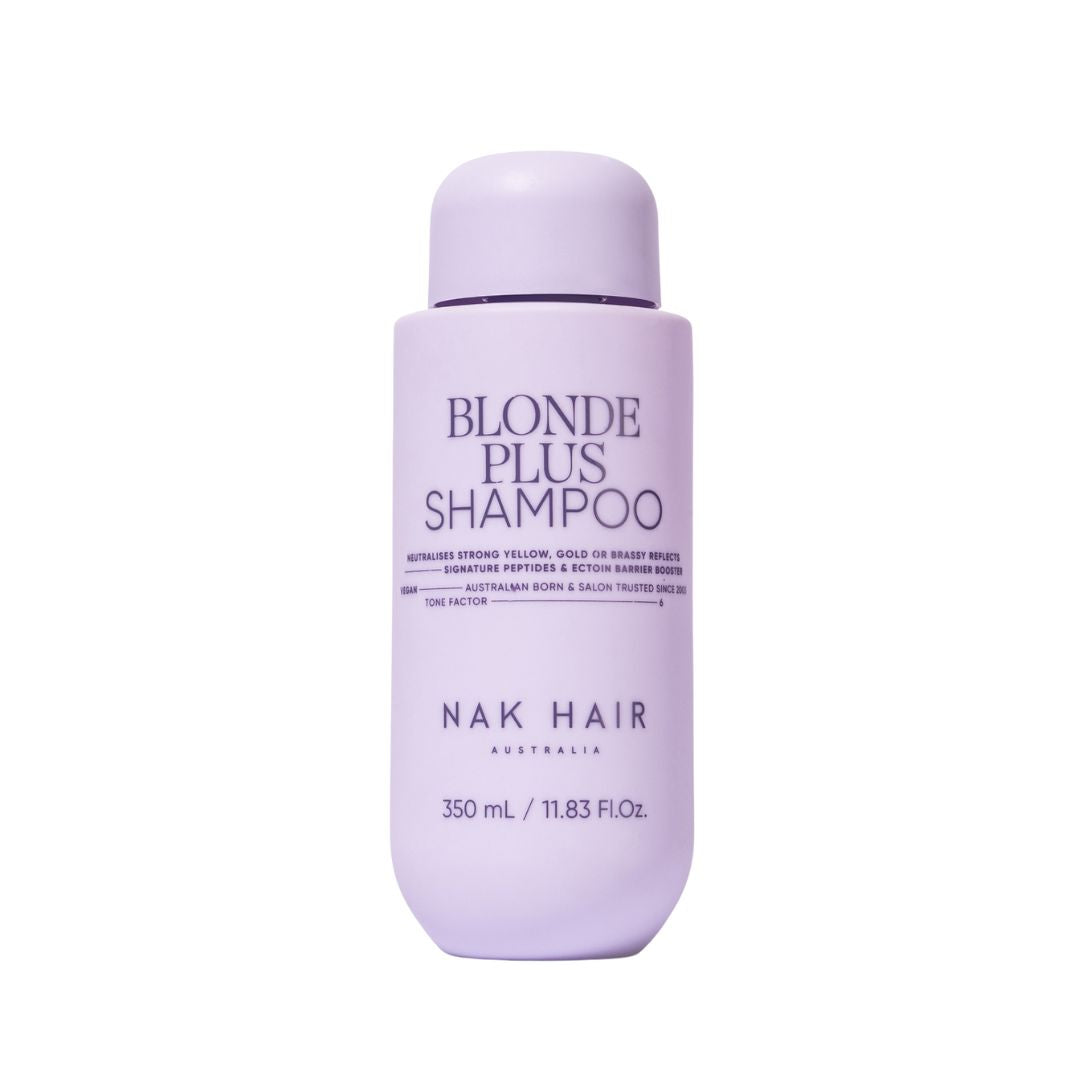 NAK Signature Blonde Plus Shampoo 350ml neutralises strong yellow, gold or brassy reflects. A toning cleanser to neutralise strong yellow, gold, or brassy blonde tones.