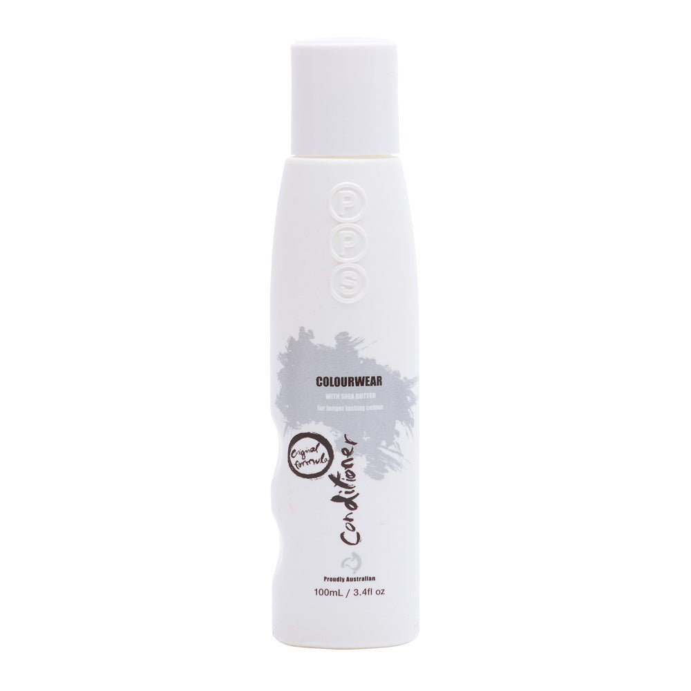 PPS Colourwear Conditioner 100ml hydrates and strengthens coloured hair to protect and prolong your colour. Colourwear Conditioner conditions the hair, adds shine and strengthens all coloured hair, re-balancing and improving longevity of your colour. Blended with Shea Butter and extracts of chamomile nourish and replenish your hair, while vitamin E adds softness and smoothness to the hair surface.