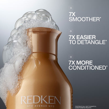 Redken All Soft Conditioner 300ml is made with Redken's Moisture Complex and Argan Oil, designed to detangle, moisturise and soften dry, brittle hair. This conditioner provides 15x more conditioning and moisture when used with the complete All Soft haircare system.