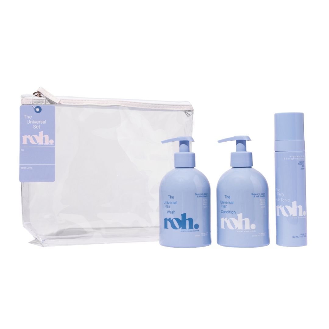 ROH Universal Hair Wash is a cleanser that strengthens, hydrates, and protects. A perfect nutrient-rich pair for balancing the scalp microbiome, restoring scalp vitality, and building strand resistance from root-to-tip.