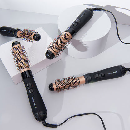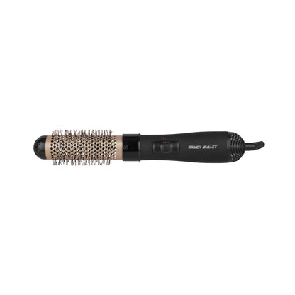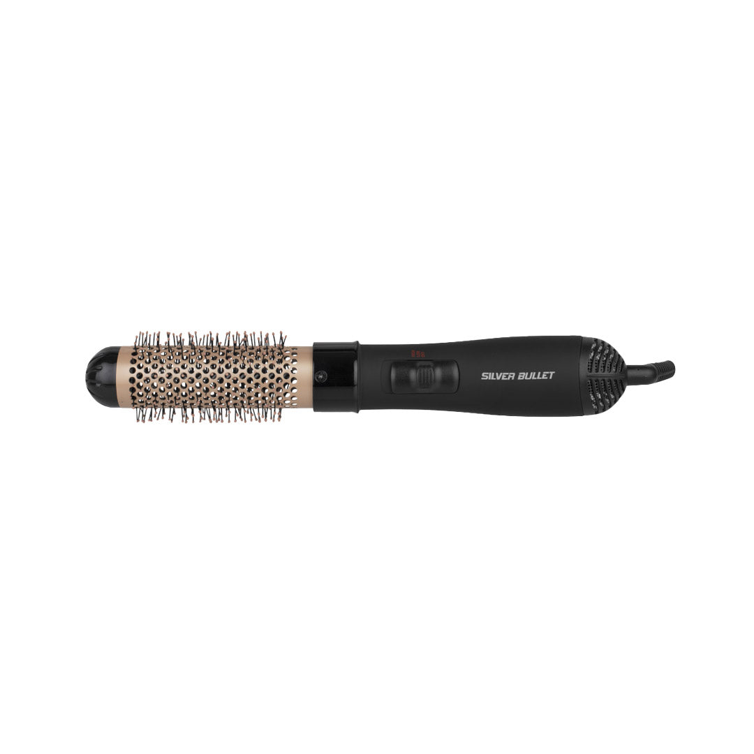 Silver Bullet Genesis Hot Air Brush 38mm Gold simplifies the process allowing you to dry and style hair simultaneously. Featuring two speed/heat settings, this Hot Air Brush features bristles with ball tips for extra grip and a tourmaline-ceramic brush barrel which create volume or perfect curls whilst drying. The beginning of stress less salon-style is here.