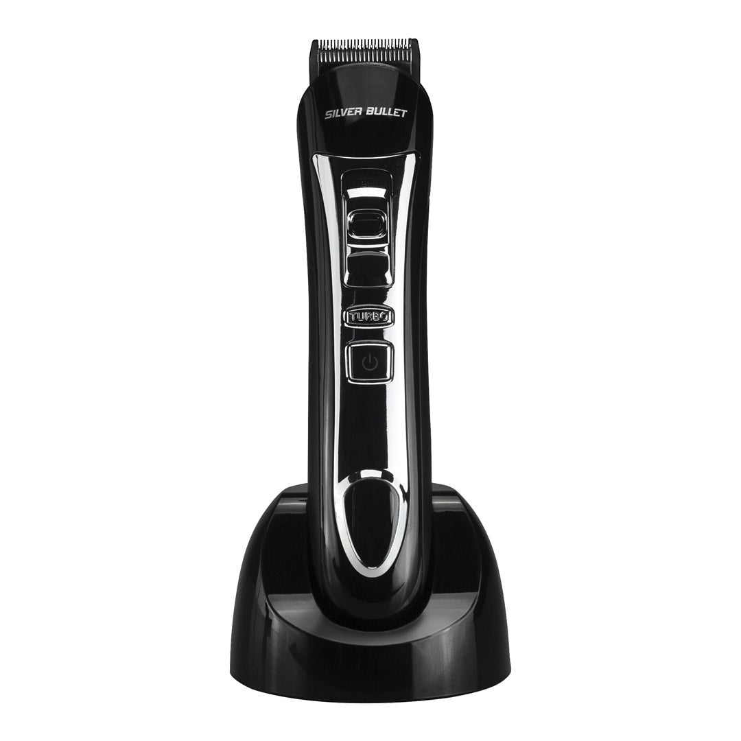 The long-life lithium battery with 100 minutes of usage time and optional power cord give you freedom to go cordless, but allows you to plug in as needed. Dual voltage, the Silver Bullet Lithium 100 Pro Hair Trimmer is ready when you are (wherever you are!) for close trimming work of moustaches, beards, hairlines or necklines. It’s trimming the fast and easy way. Silver Bullet. Closer. Faster. Better.
