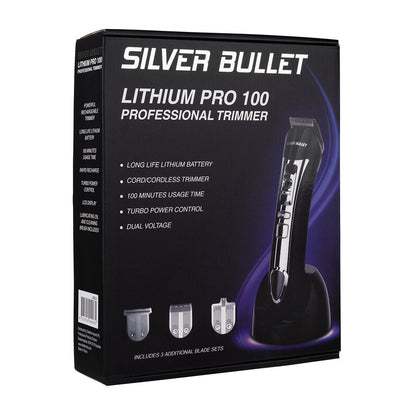 Silver Bullet Lithium Pro 100 Trimmer is a powerful, rechargeable trimmer of optimum professional quality. When professional stylists Australia-wide think of speed, they think of Silver Bullet and that’s exactly what the Silver Bullet Lithium 100 Pro Hair Trimmer delivers.