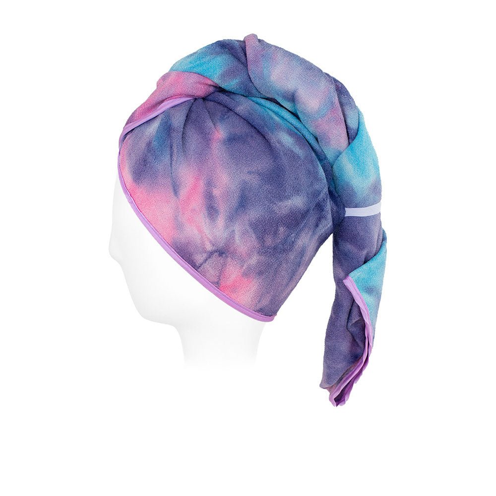 Ugly Swan Unicorn Microfibre Hair Towel Tie Dye Pink provides gentle fast drying of wet hair, curved back moulds to your head. Our hair towels dry hair faster than cotton. No friction damage. Holds seven times its weight in water and stays securely on your head with its large elastic loop. One size fits all.